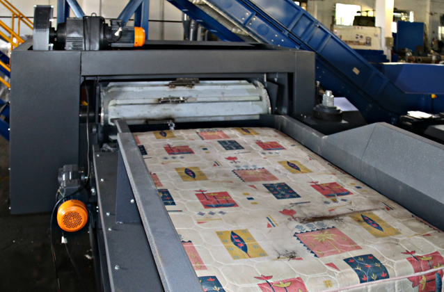 3E机械WT系列床垫撕碎机,可以根据物料、产量及出料尺寸等为客户提供一站式技术解决方案,经处理后的物料可直接回收循环再利用或按需求作进一步细化处理。该系列撕碎机特别设计有喂料滚筒装置来控制喂料量,保证刀辊工作顺畅,产量大,能效高;控制采用西门子编程系统,可自动控制设备运作,设有启动、停止、反转及超载自动反转控制功能,具有低速、大扭矩,低噪音等特点。