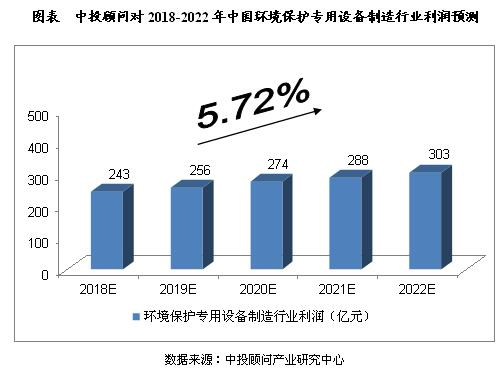 2018年我国环境保护专用设备制造行业利润将达到243亿元,未来五年(2018-2022)年均复合增长率约为5.72%,2022年将达到303亿元。