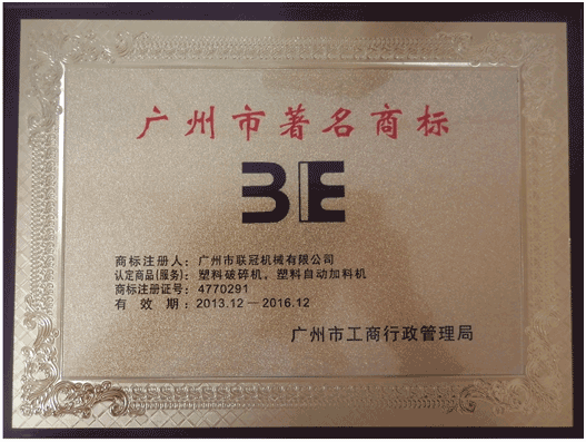 凭借在环保回收设备领域的自主创新能力以及行业知名度, 2014年,3E九游会真人获得了由广州市工商行政管理局颁发的《广州市著名商标》称号以及证书。