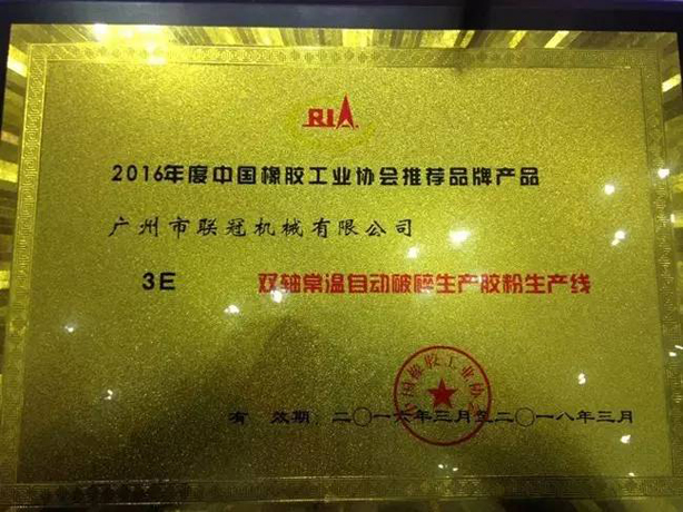 2016.11 榜样的力量——凭借自主研发的创新技术荣获2016年度中国废塑料协会年度技术成果奖。