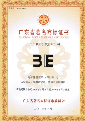 2016年7月,3E广州联冠机械有限公司的“3E”商标获得了广东省著名商标称号。荣誉的获得体现了客户、市场、权威机构对公司品牌及产品的信任与支持,是对公司全体成员不断提升的专业肯定,是3E机械坚持品牌发展道路上又迈出的坚实一步!