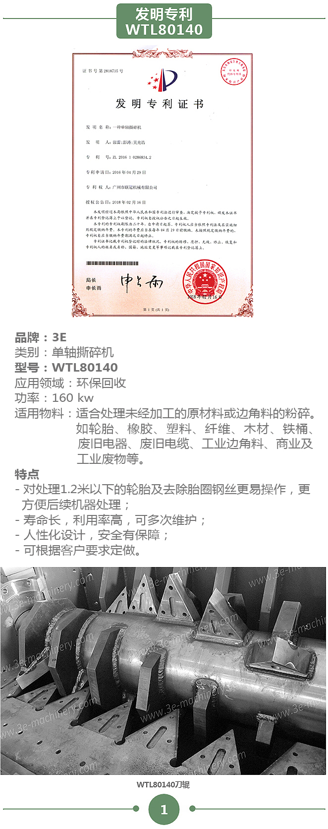 春风吹,战鼓擂!春天的新气象也为3E机械带来了好消息,开春之际,妥妥地一举收割了轮胎撕碎机+铜米一体机两项发明专利,是3E机械2018的良好开端。
