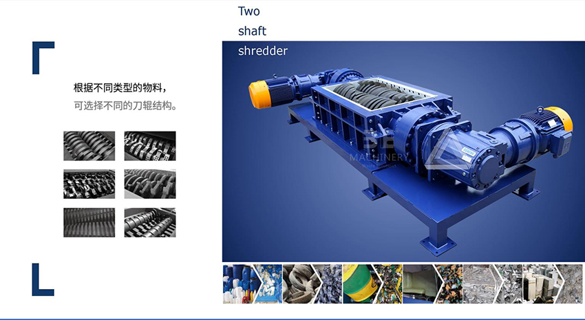 GL系列双轴撕碎机可满足各行业的废料回收要求,充分体现了低转速,大扭距剪切设计的优越性。经撕碎后的物料可直接回收使用或根据需求作进一步细化处理。