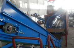 矿石筛(通过物料尺寸进行分离)干燥后的废料被送进矿石筛里。细小的物料(不带可燃物料)例如砂石,玻璃等会被分离出来。矿石筛长8米,直径2.2米。当矿石筛开始转动,里面的物料会向前滑下来。颗粒物料的尺寸比规定尺寸(大概20mm)还要小,会穿过筛网孔而被筛选出来。不含可燃物料的东西都会被收集起来,然后通过铲斗运走。含可燃物料的那些会从矿石筛另一端出来然后进行下一步的处理。 |